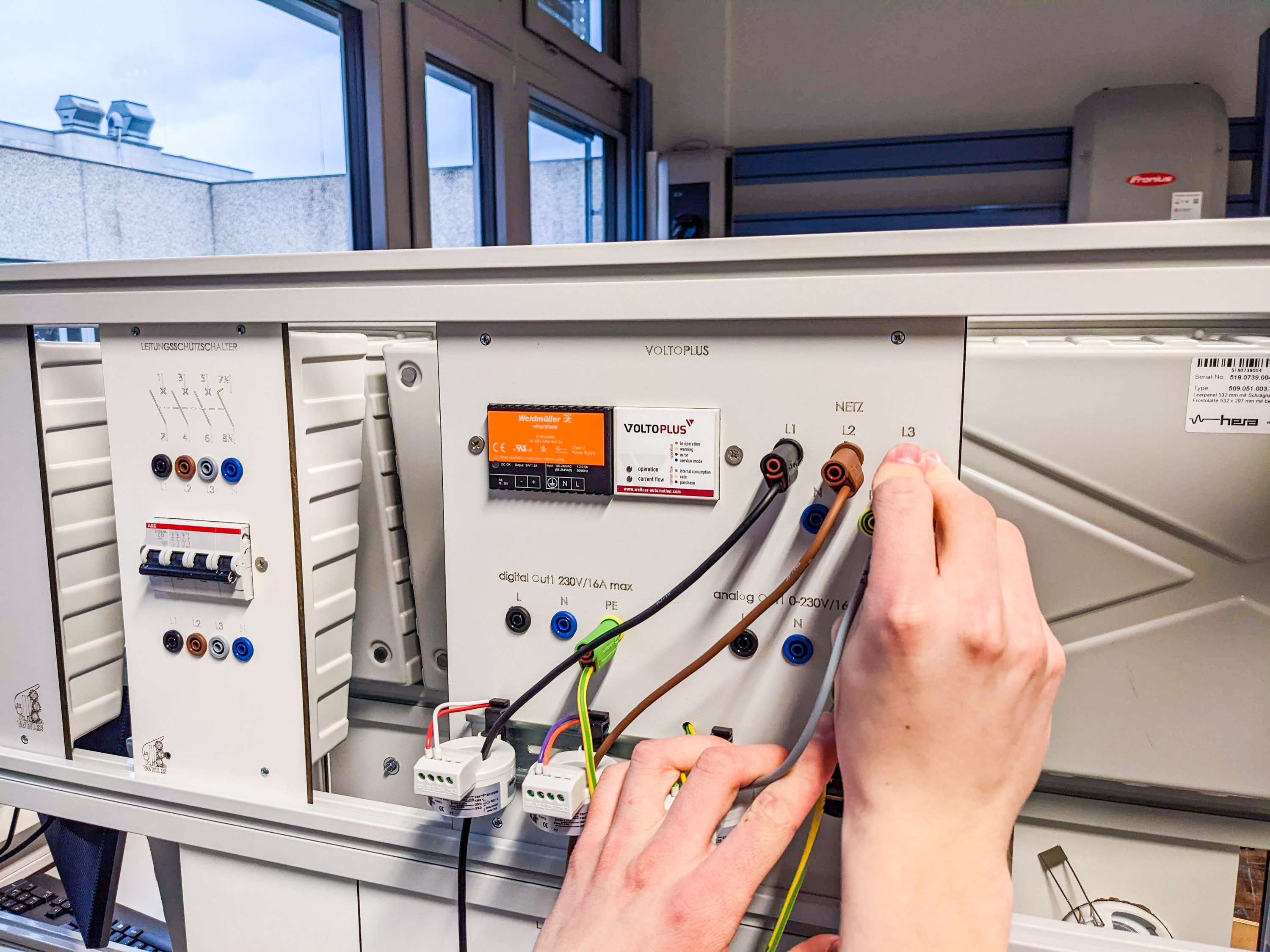 Seit dem letzten Jahr ist das neue schulinterne PV-Labor der HTL Wels in Betrieb. Damit findet auch der Überschussregler Voltoplus von Wallner Automation im schulischen Unterricht seine Anwendung. Im Praxis- bzw. Werkstättenunterricht lernen die Schüler:innen die Inbetriebnahme der PV-Anlagen am Schuldach sowie die Messung der Eigenverbrauchsoptimierung mit Voltoplus.